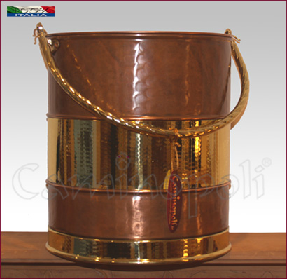 Cet objet est banalement appelé seau, mais c’est un meuble précieux, nous le proposons comme récipient pour le bois et les pellets, il est réalisé en laiton et cuivre massif, strictement à la main par nos maîtres artisans.