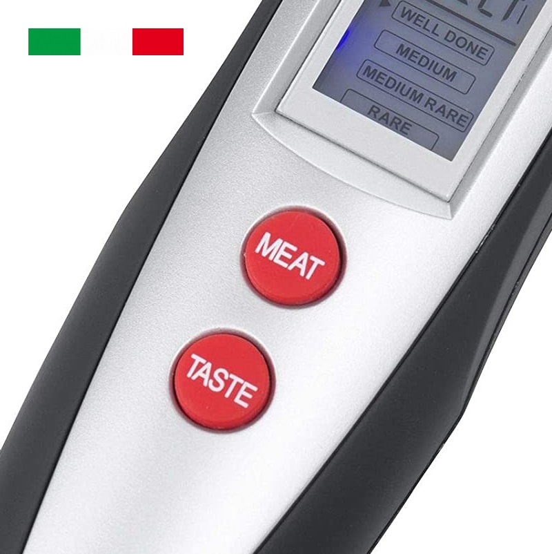 Elle peut être programmée et lorsqu’elle atteint le degré de cuisson requis, le thermomètre émet un signal sonore.