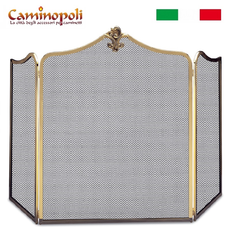 Très grand pare-étincelles à 3 portes avec cadre en laiton poli, extrêmement inhabituel pour sa taille.