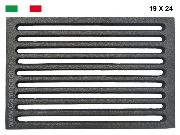 La grille est en fonte, mesure 24 X 19 et a une épaisseur de 10 mm.