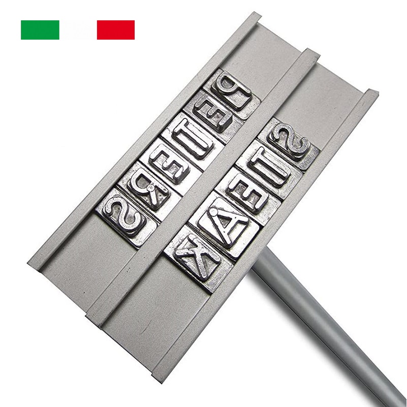 1 clé, 2 butées en U, 3 grands espaces, 5 petits espaces, 55 lettres majuscules.