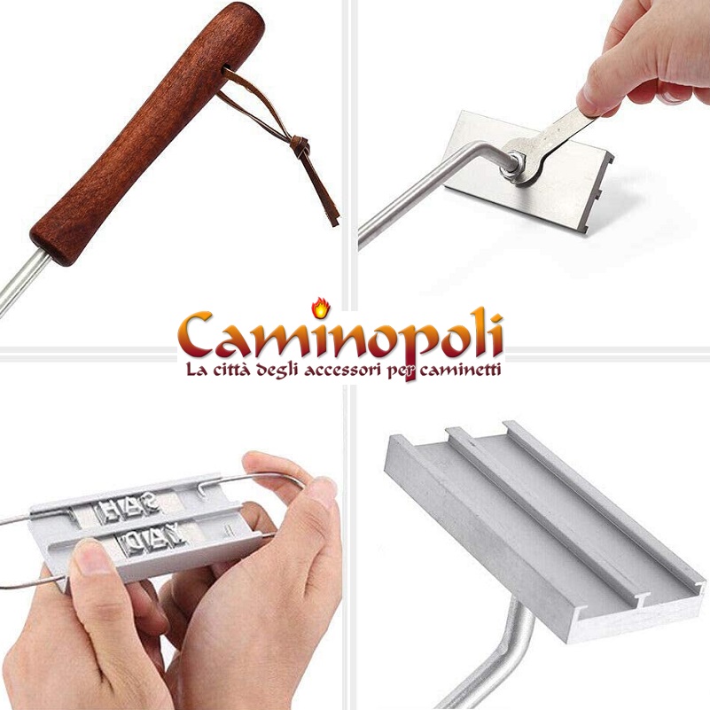 Facile à utiliser, créez le lettrage que vous voulez et laissez-le chauffer dans le feu pendant 8-10 minutes, puis appuyez et tamponnez.