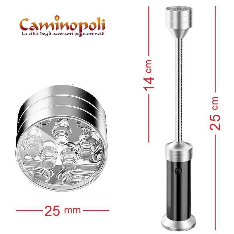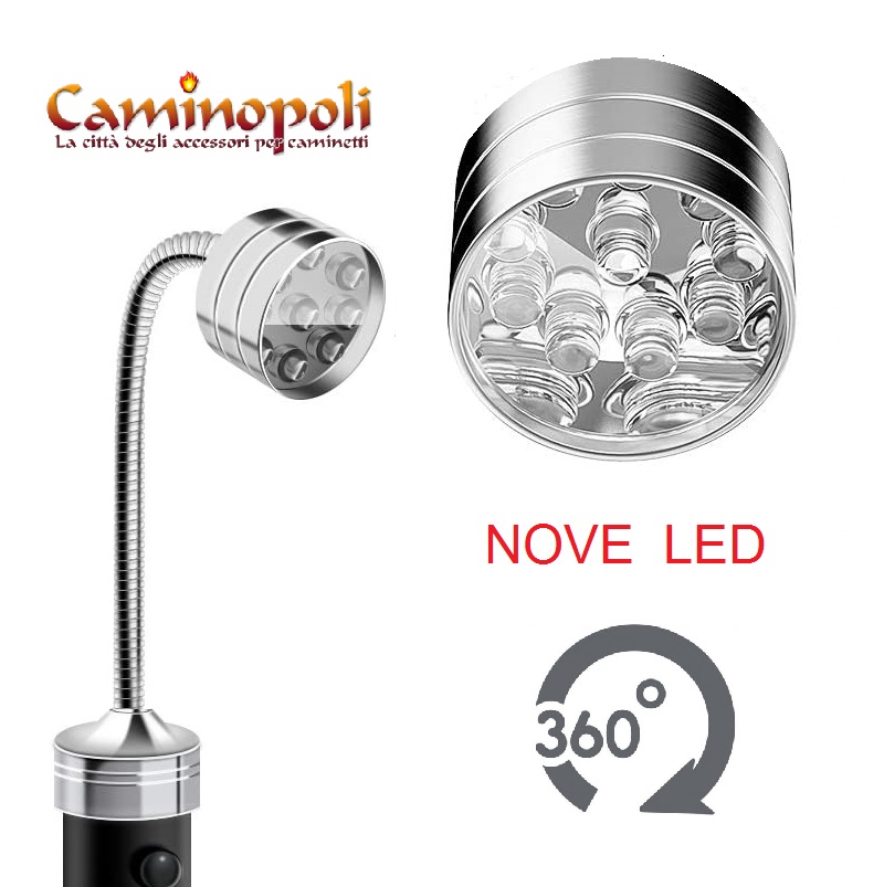 La base cylindrique accueille les trois piles et la partie flexible chromée est entièrement flexible, ce qui permet d’orienter le faisceau lumineux à 360° là où nous en avons besoin.