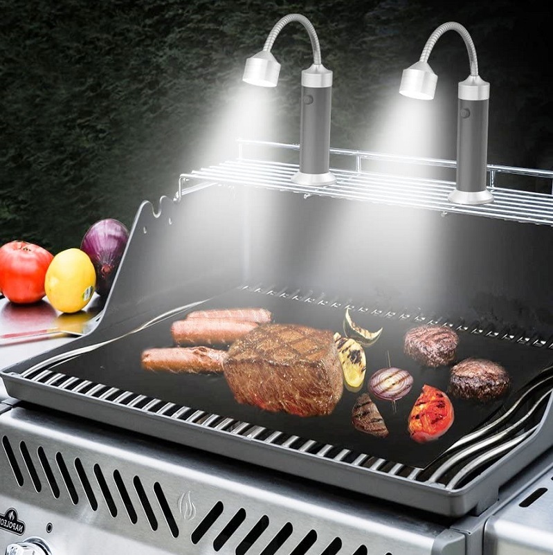 Paire de lampes LED pour suivre la cuisson du barbecue les soirs d’été.