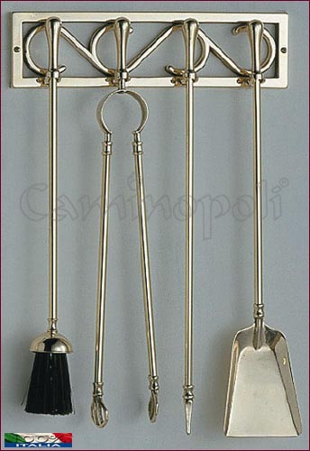 Ensemble d’outils muraux en laiton, 4+1 pièces, pour ceux qui souhaitent optimiser l’espace devant la cheminée.