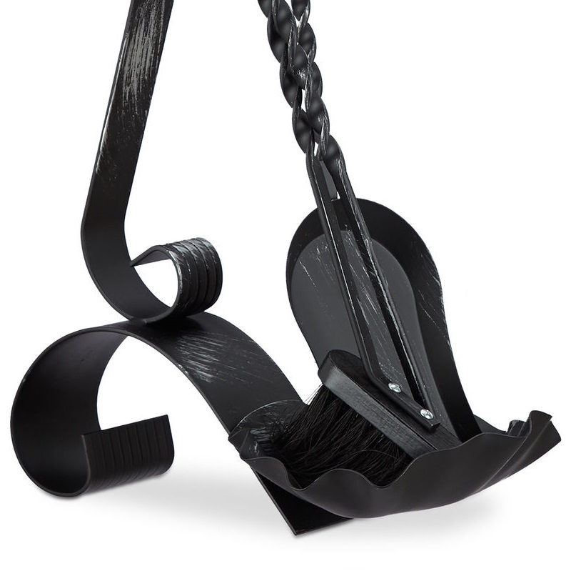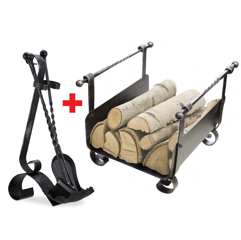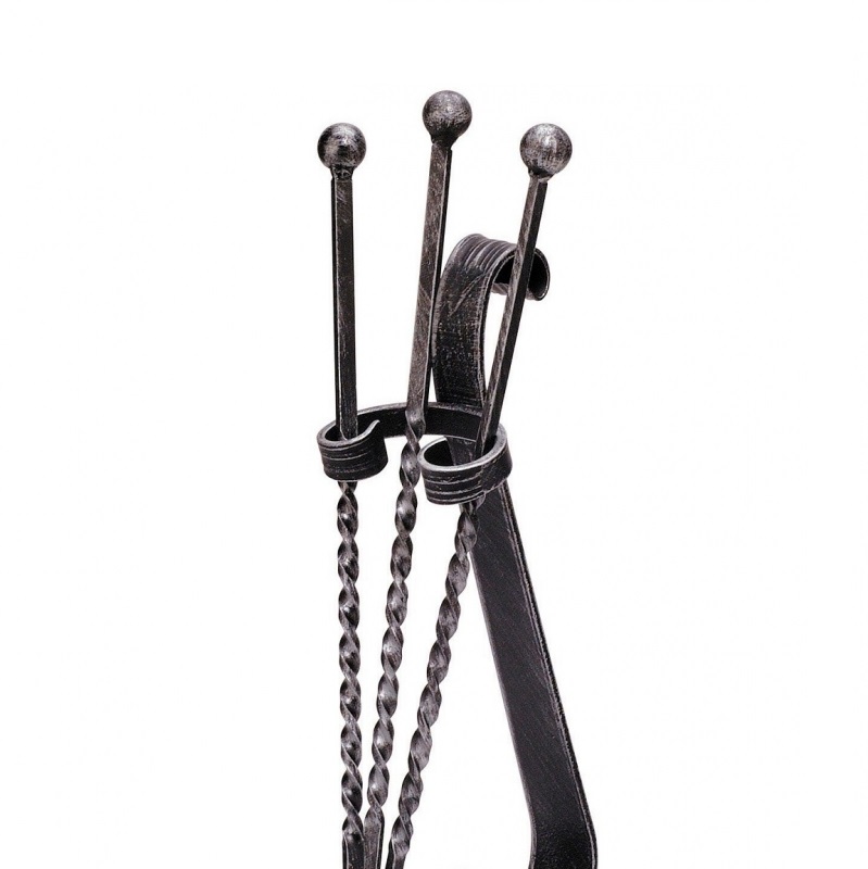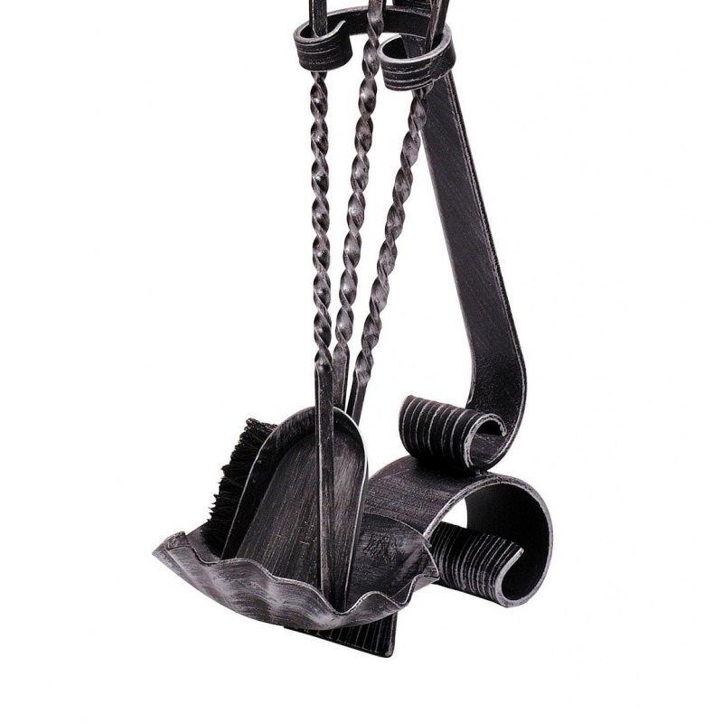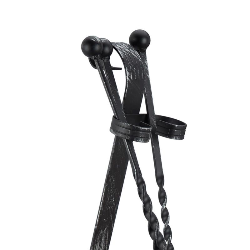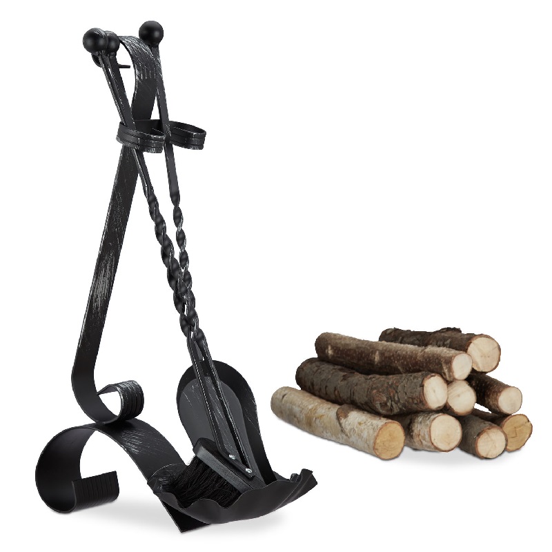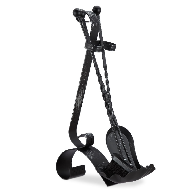 Ensemble d’outils pour cheminée en fer forgé avec support de cheminée.