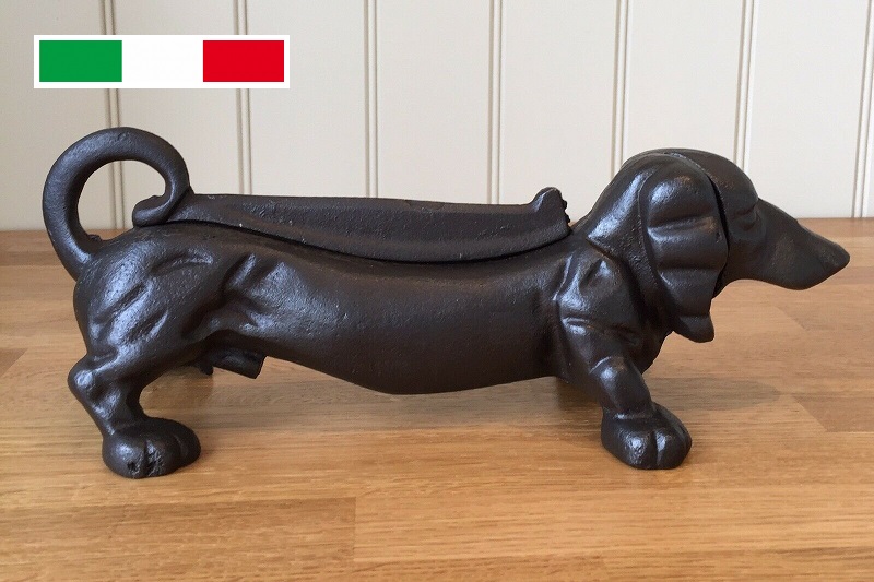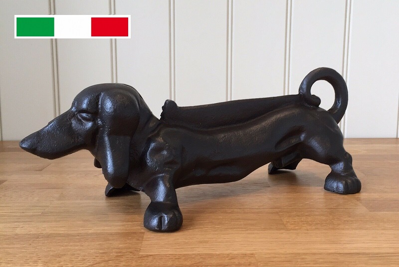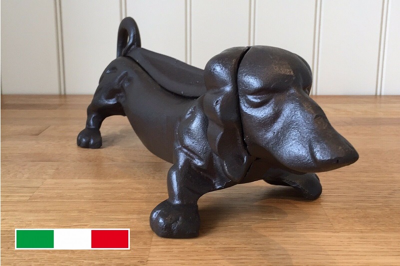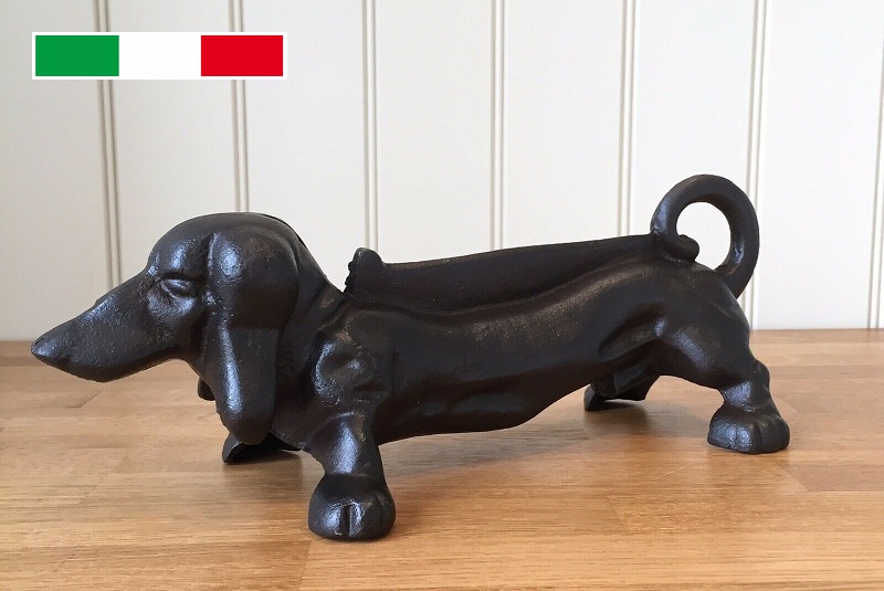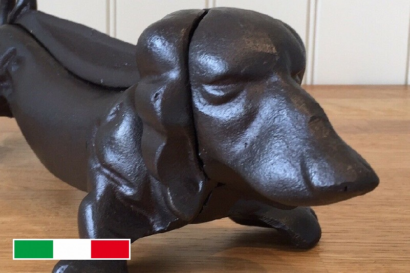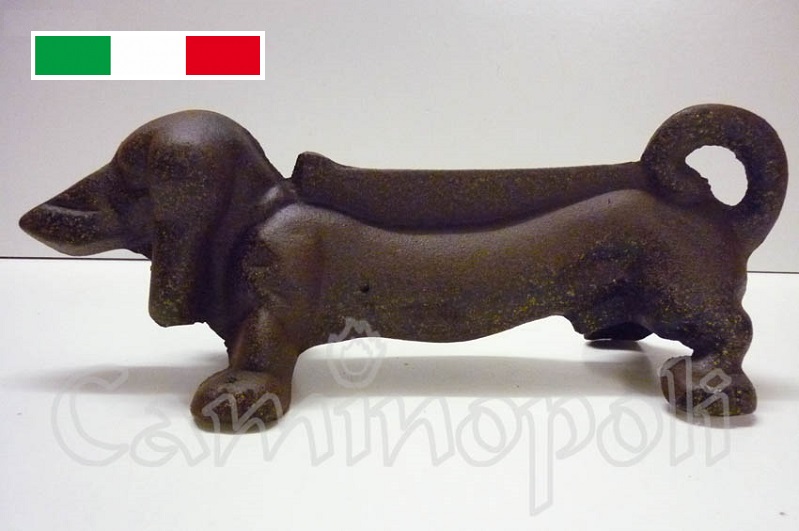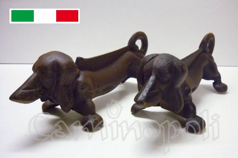 Paire de teckels en fonte qui sont utilisés comme des ailes dans la cheminée mais aussi comme de jolis arrêts de porte.