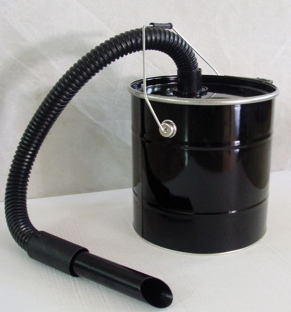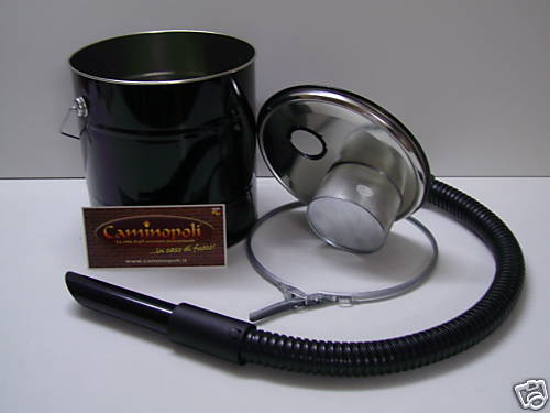 Aspiracenere in metallo verniciato con tubo flessibile in acciaio e rivestito in gomma per un piacevole tatto con microfiltro metallico per aspirare anche le ceneri calde.