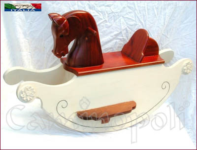 Bellissimo cavalluccio a dondolo in legno massello, classico con le mezze lune, fatto interamente in legno, bello da tenere nel salotto di casa e robusto per far giocare i vostri bambini.