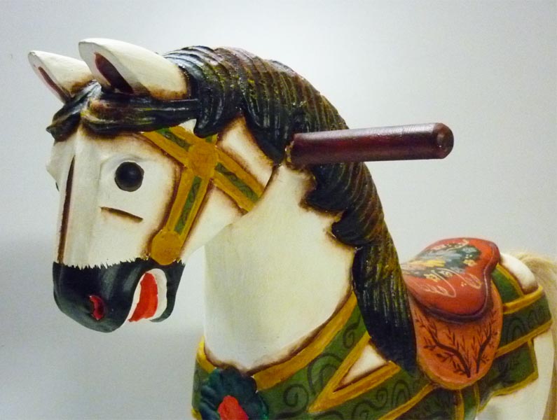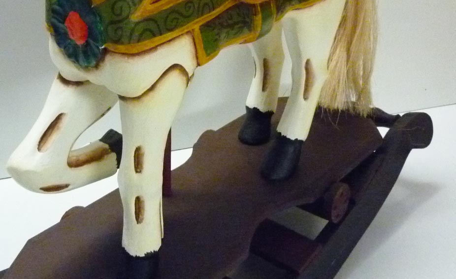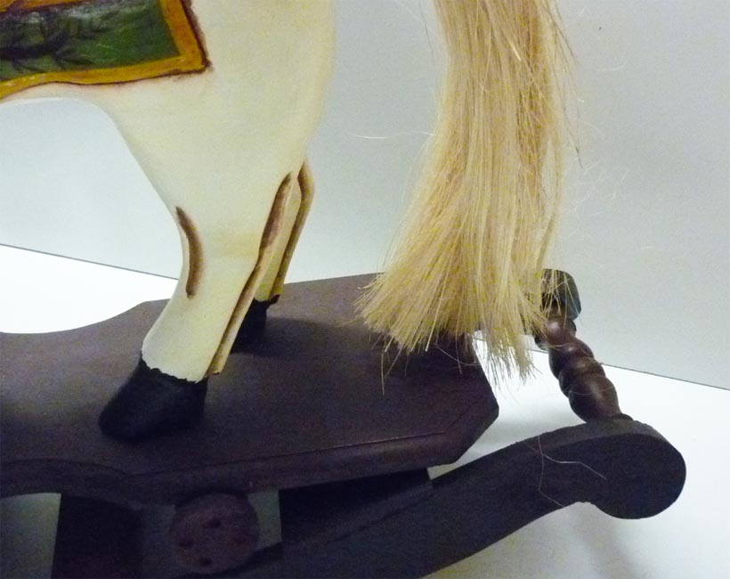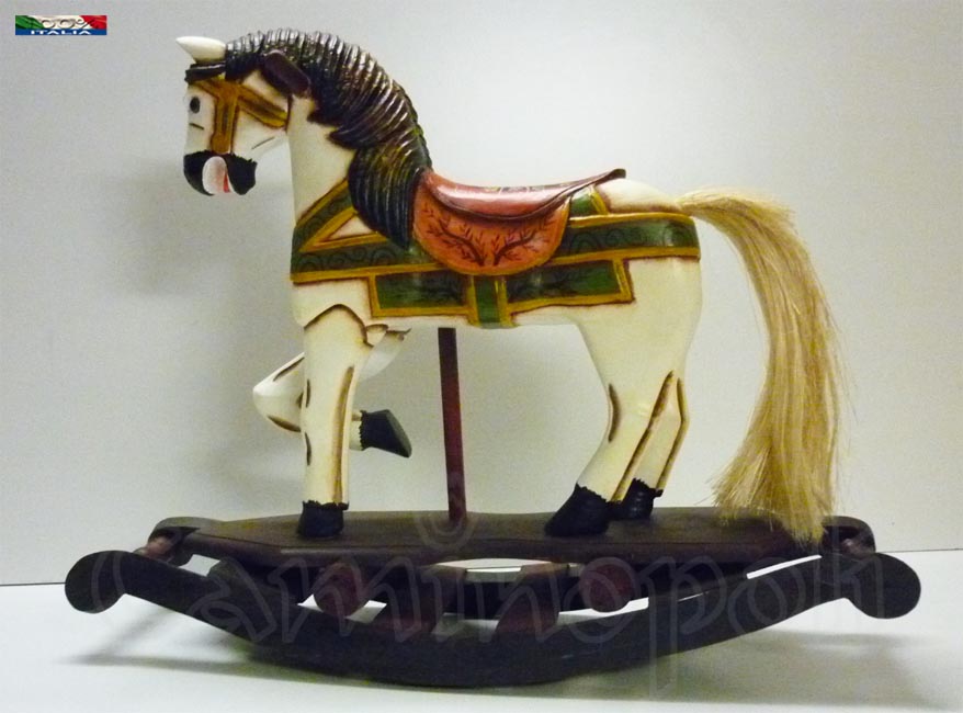 Bellissimo cavallo a dondolo di piccola taglia, realizzato interamente a mano, struttura in legno con pittura a pennello.