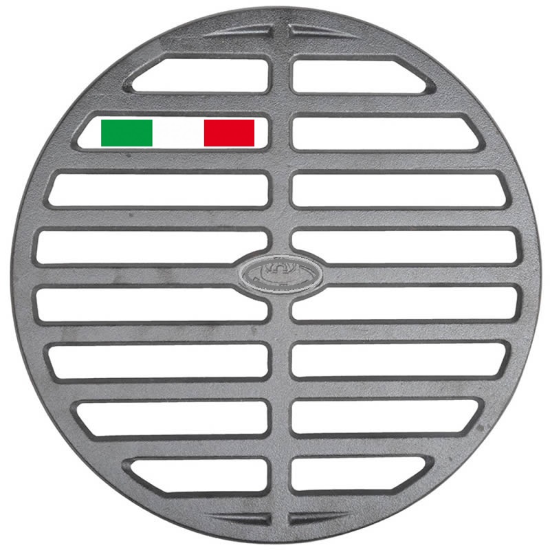 Realizzata in Ghisa, misura 34 cm di diametro e tre piedi avvitati che la sollevano di 10 cm