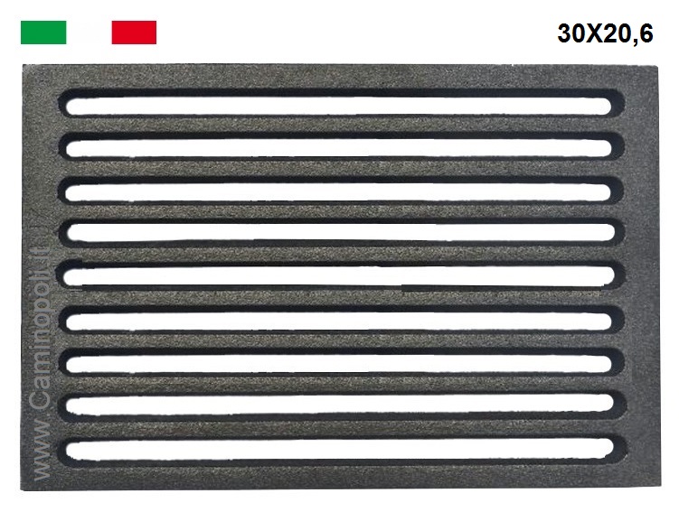 La griglia è in ghisa, misura 30 X 20,6 ed ha lo spessore di 10 mm.