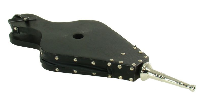Elegante mantice in legno verniciato nero con particolari in ottone nichelato
