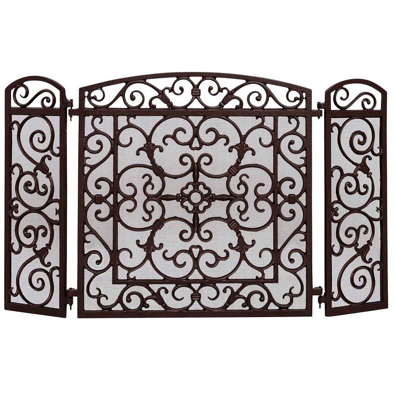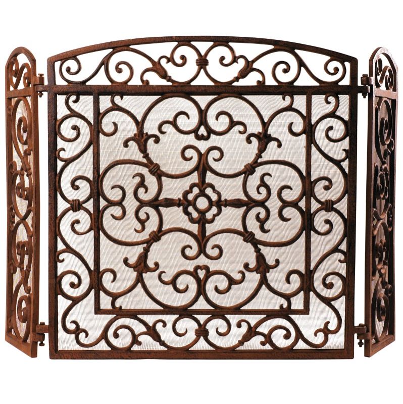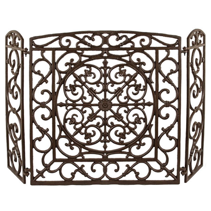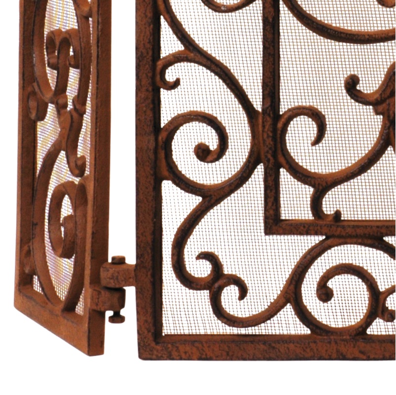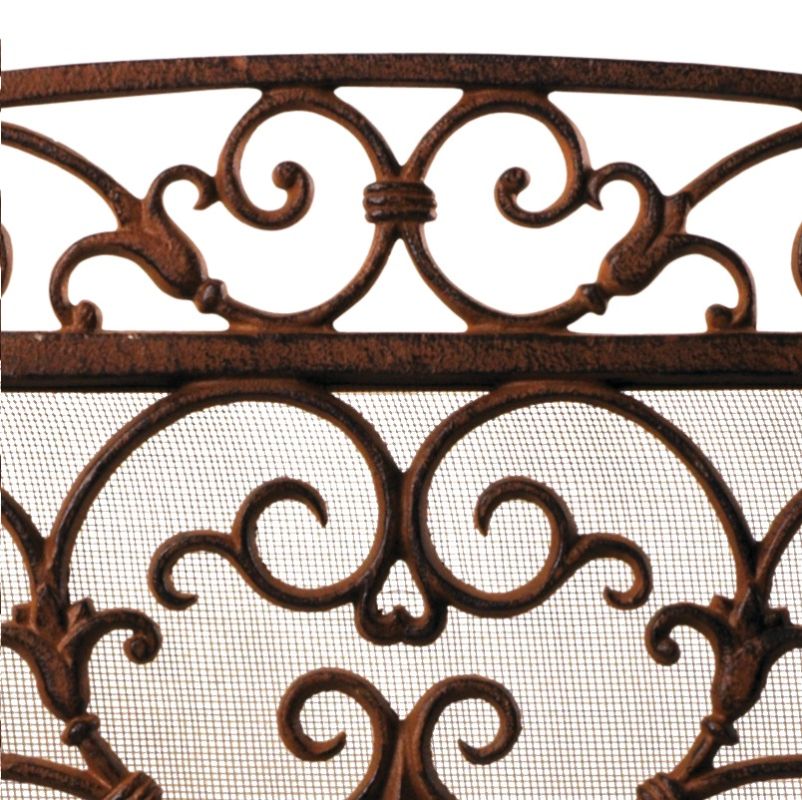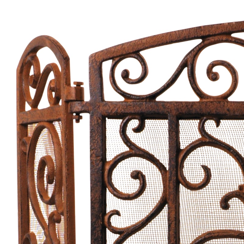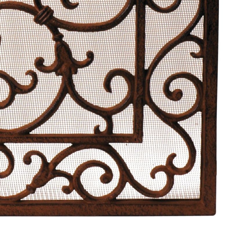 Parascintille per il camino, struttura in ghisa e fine rete metallica protettiva.