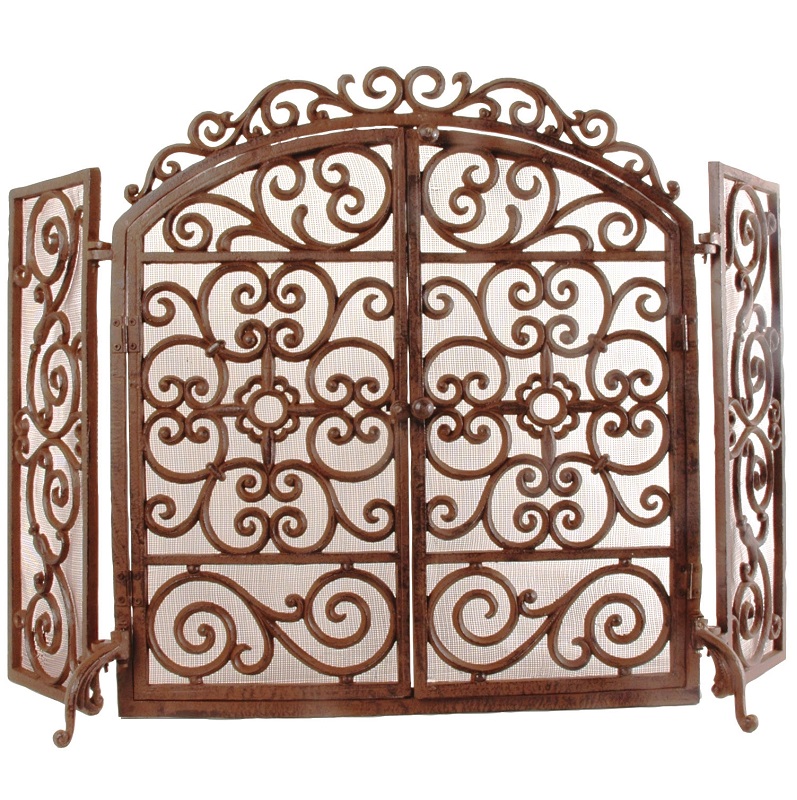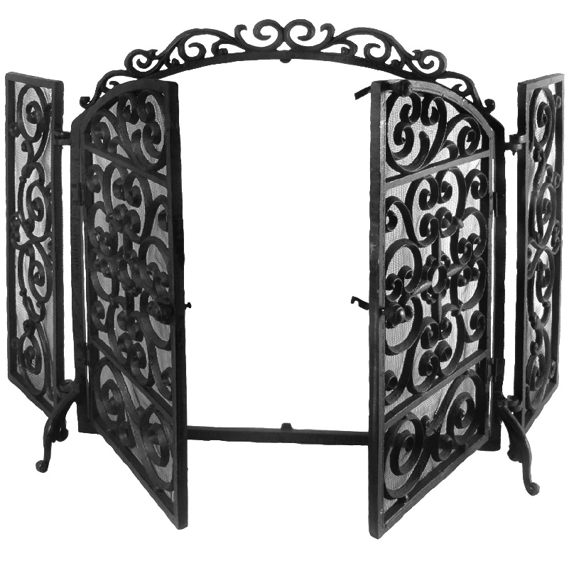 Parascintille dallo stile decisamente Rustico o Country, struttura in ghisa con rete protettiva.