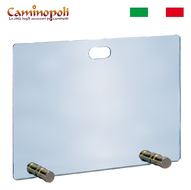 Schermo Parascintille in Cristallo Temperato Trasparente con asola per una presa facile e sicura senza lasciare le fastidiose impronte, piedini in ottone lucido.