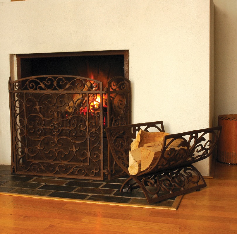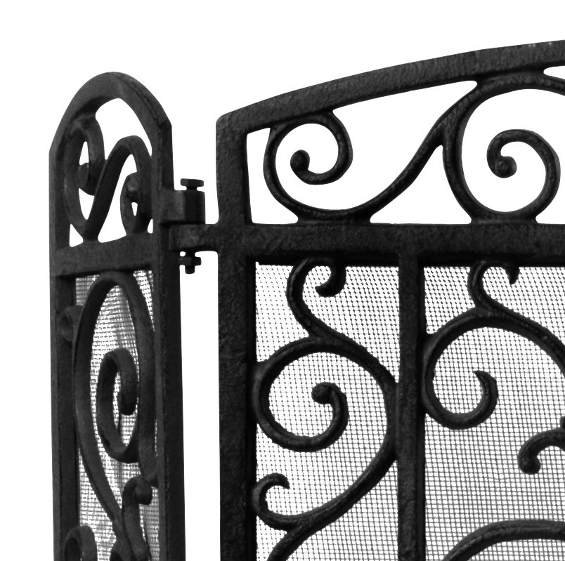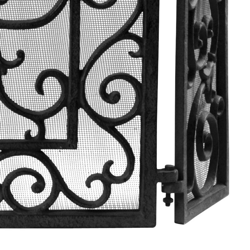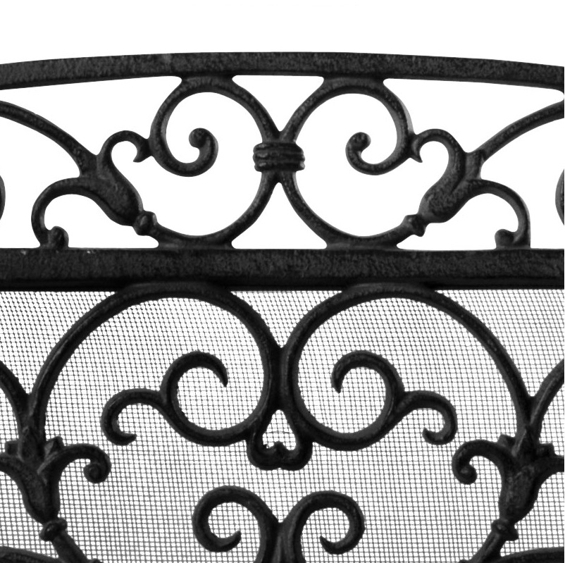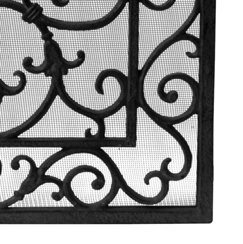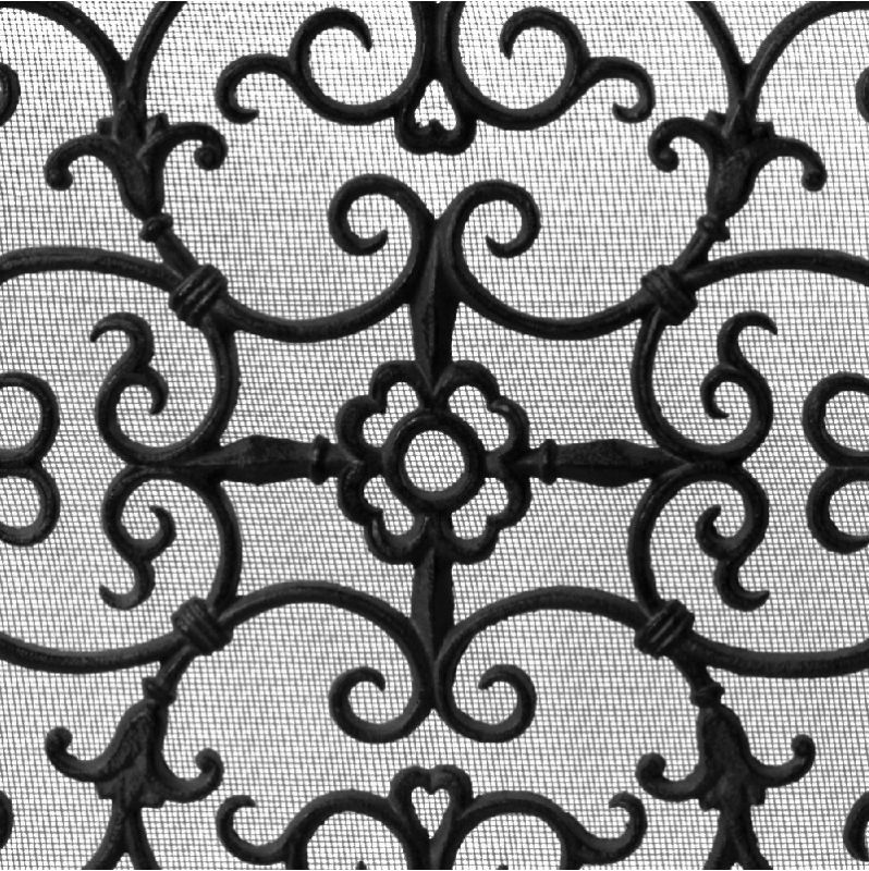 Parascintille per il camino, struttura in ghisa e fine rete metallica protettiva.