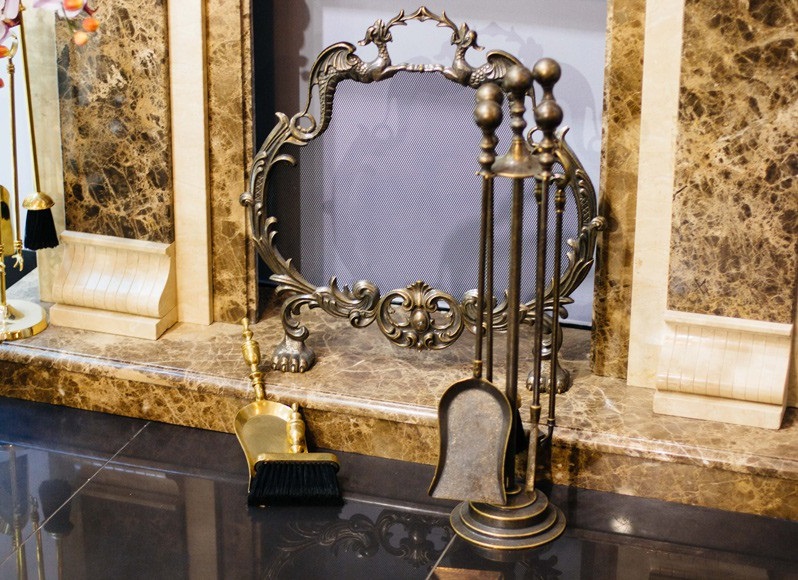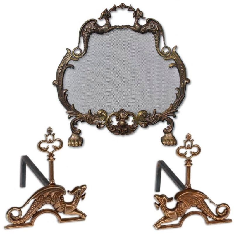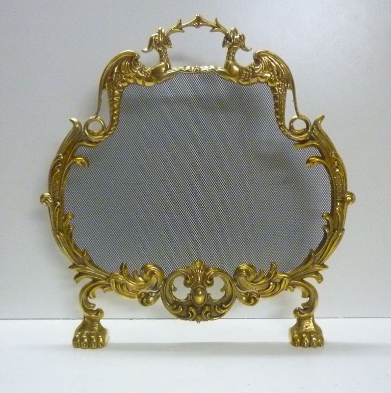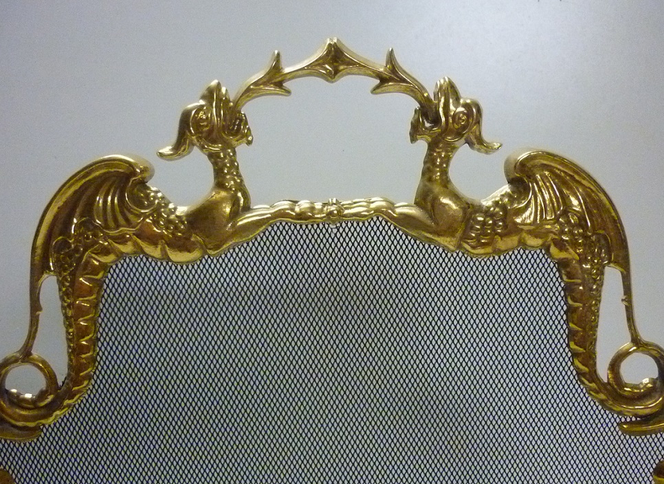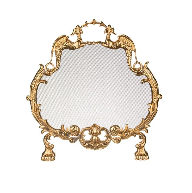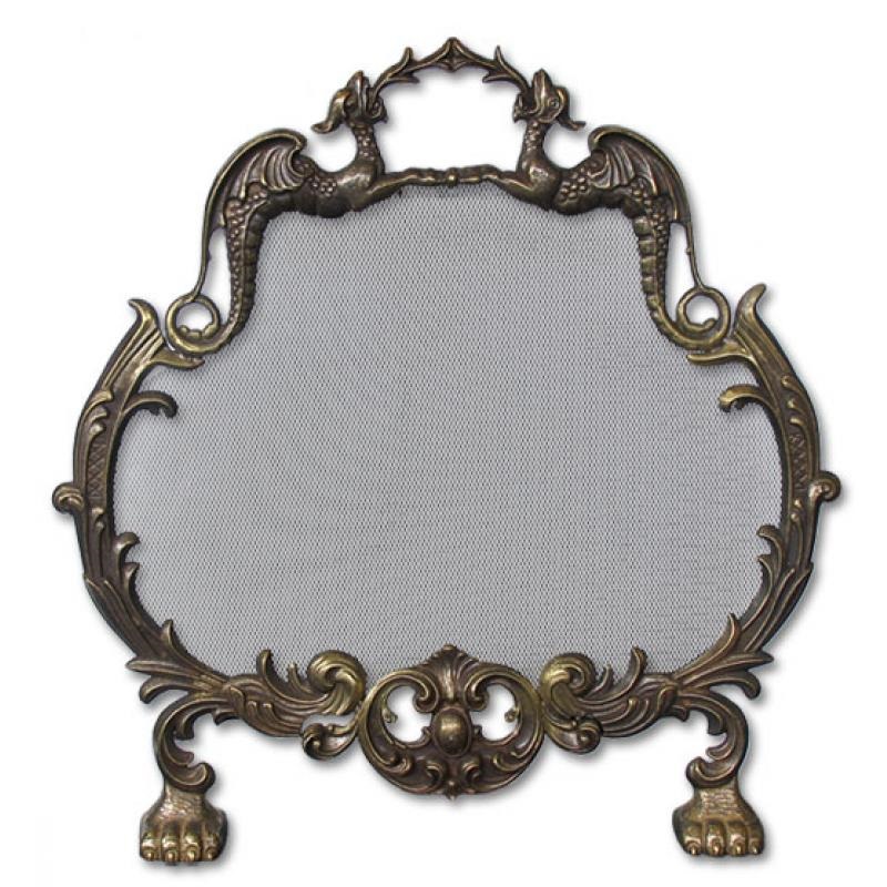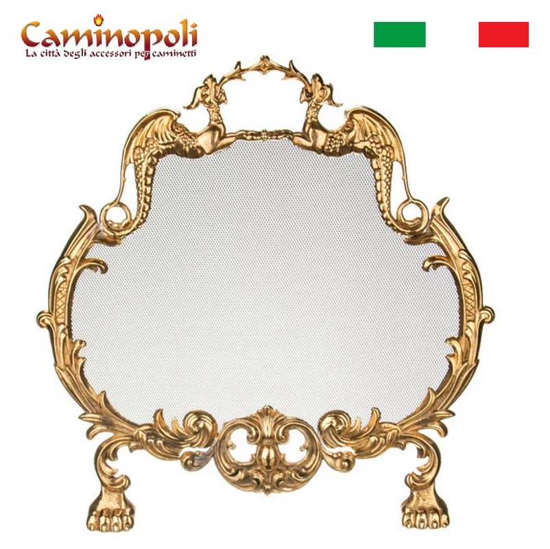 Parascintille in ottone con Draghi proveniente da uno stampo secolare e proposto da sempre nella sola finitura Anticata ma da oggi potrete richiedere anche la versione in ottone Lucido e rete nera.