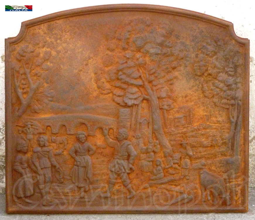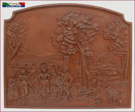 Piastra in ghisa raffigurante un momento di Festa.