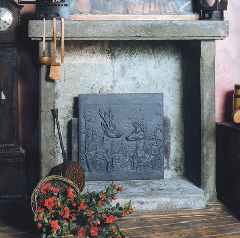 Piastra in ghisa per il camino con decorazione in rilievo, Cervi / Cerbiatti.