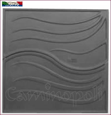 Piastra in ghisa dal design moderno da inserire sul fondo del camino, è composta da due corpi e si può montare orizzontale o in verticale.