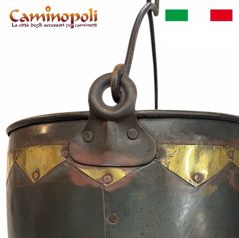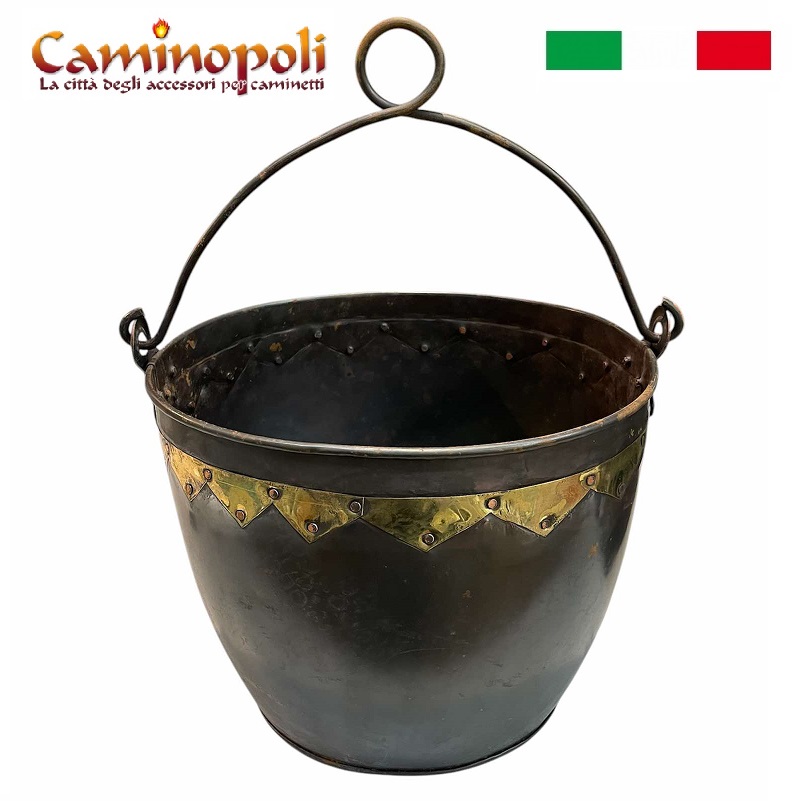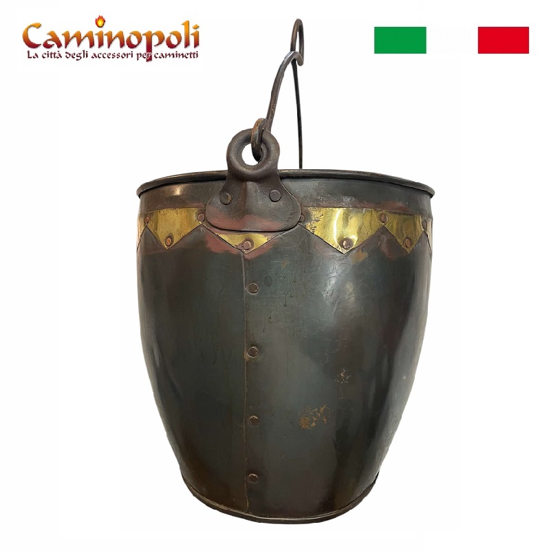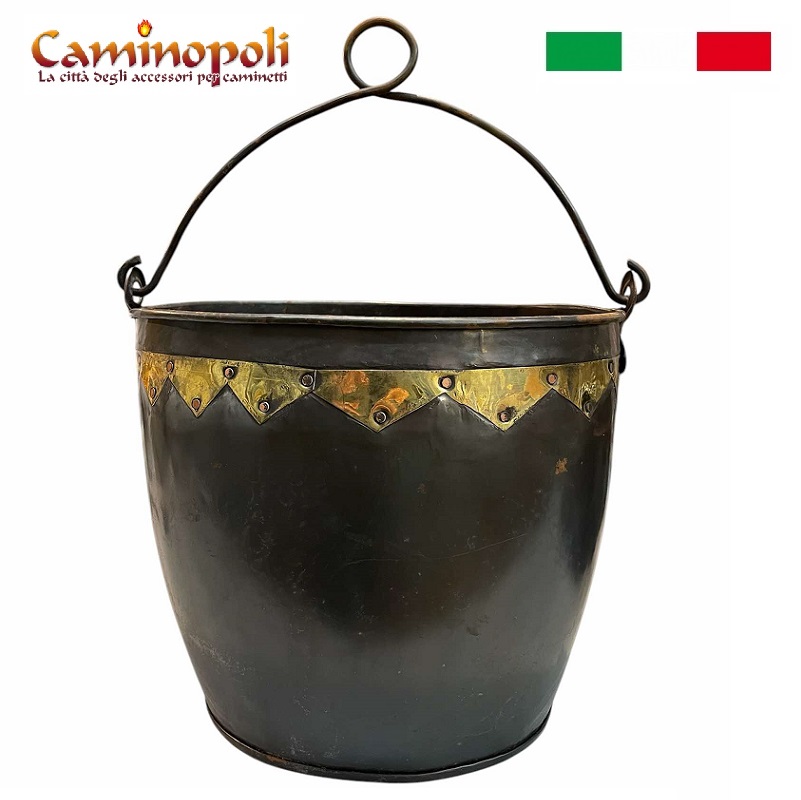 Secchio in ferro e ottone, per carbone, cenere, Pozzo, etc.
