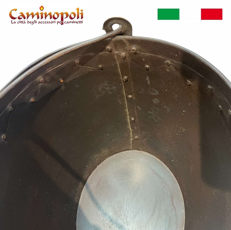 Secchio per la raccolta della cenere da tenere vicino al camino, bello anche in estate se lo immaginiamo all’interno e al posto del fuoco con dentro una bella composizione di fiori secchi.