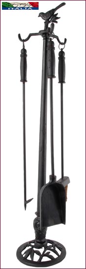Set di attrezzi 4+1 pezzi in ghisa, colore nero, composto da scopino, paletta, molla ed attizzatoio.