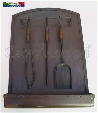 Set di attrezzi 4+1 pezzi in ferro forgiato e legno.