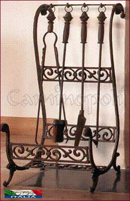 Struttura unica per avere gli attrezzi del camino ed un comodo portalegna tutto in uno.