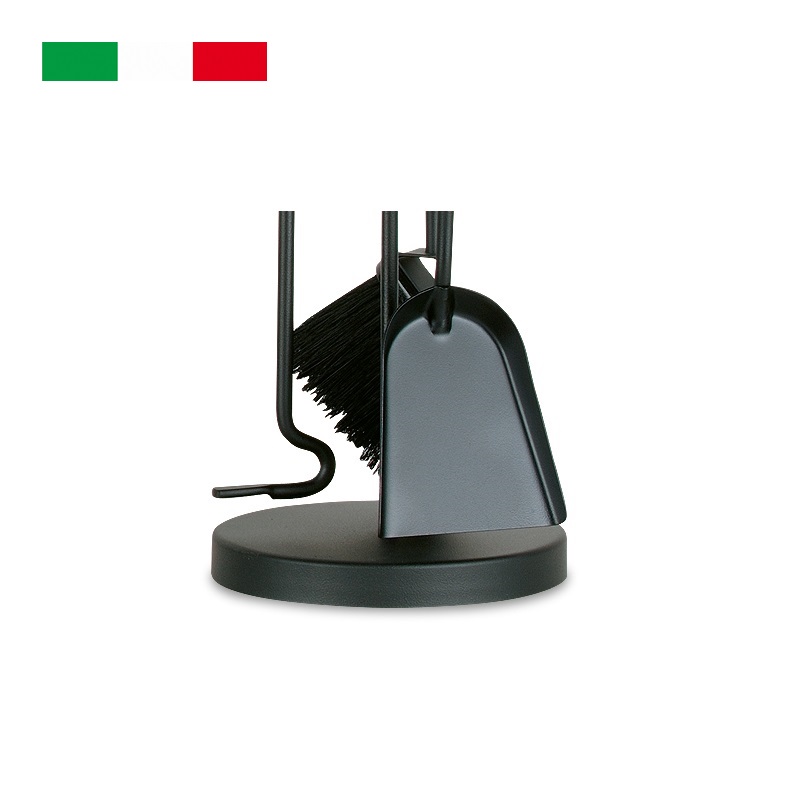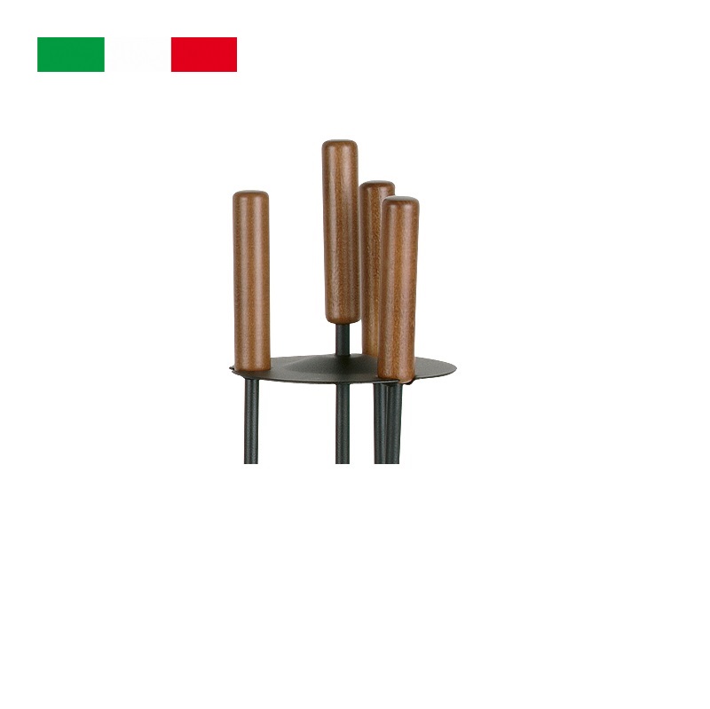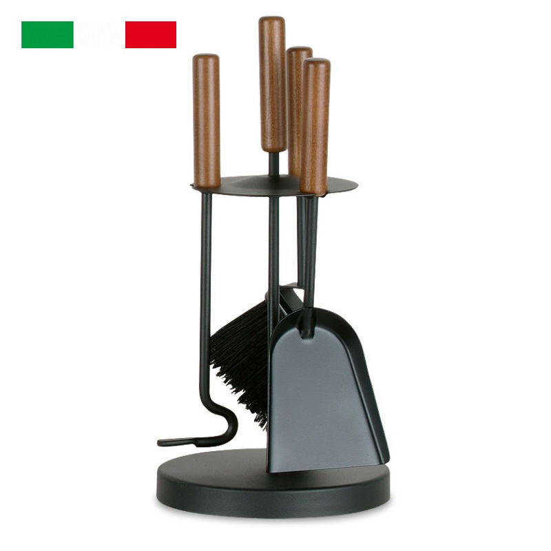 Set di attrezzi per il Camino in Acciaio verniciato di colore nero con impugnature in legno.
